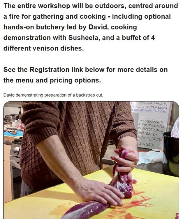 April, 2026 NEWSLETTER, Growing Our Food & Venison Workshops, Apr 17 AGM